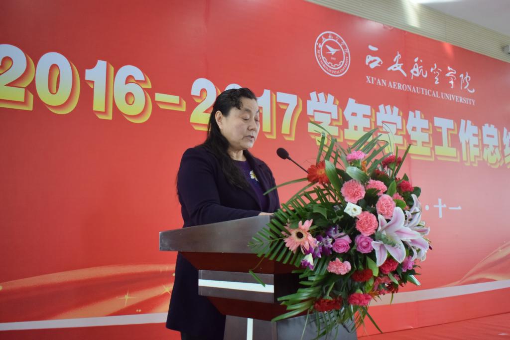 党委副书记谭少敏在2016-2017学年学生工作总结报告中,回顾了上学年学生工作在学生教育管理工作、毕业生就业、共青团“三下乡”社会实践等方面工作取得的成绩。她指出,全校学生工作始终坚持社会主义核心价值观和立德树人的根本任务,深入贯彻落实全国高校思想政治工作会议精神,不断提高学生管理和服务水平,扎实做好毕业生就业工作,对促进大学生健康成长成才,维护学校、社会和谐稳定做出重要贡献,希望各学院以先进典型为榜样,充分发挥模范引领作用,为把万博官网建设成为航空特色鲜明的高水平应用型院校而共同努力。