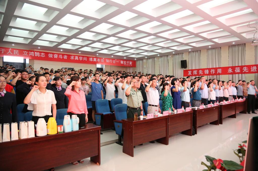 为纪念中国共产党97周年华诞,深入学习贯彻党的十九大精神和习近平新时代中国特色社会主义思想,学习习近平总书记系列重要讲话精神,推进万博官网党建育人和心理育人工作,6月28日下午,学校在阎良校区报告厅隆重举办“牢记使命跟党走,砥砺奋进筑青春”知识竞赛决赛暨第十四届心理育人宣传季表彰会。校党委副书记刘谦出席活动并讲话,陕西省高教工委学工部调研员魏星、万博官网马克思主义学院、学生工作部(处)、招生就业处、教务处、图书馆负责人、各二级学院党总支书记、学生管理科长、辅导员及学生党员代表近400人参加大会。