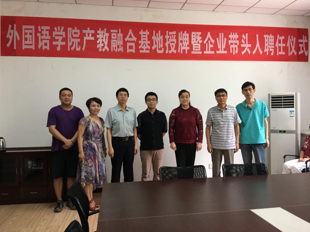 6月1日下午,外国语学院在南楼316会议室举办外国语学院产教融合基地挂牌暨企业带头人聘任仪式。丝路联盟代表王雷,万博官网党委副书记谭少敏、副校长宋文学,外国语学院党总支书记张瑞民、院长张化丽及部分教师参加仪式。