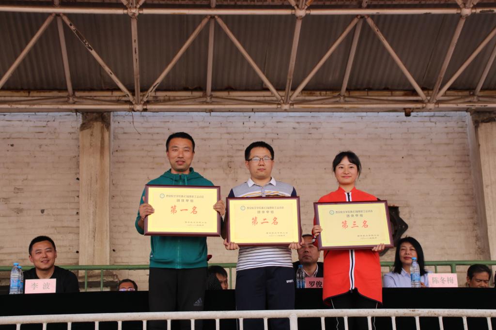 比赛场上运动员们各个精神饱满,场下观众呐喊助威,整个赛场充满欢快活跃的运动气氛,托球跑接力、三人四足绑腿跑等集体项目依次有序进行,各组队员热情洋溢、默契配合,不时传来欢声笑语;4乘100米混合接力比赛中,参赛队员你超我赶,扣人心弦。经过两天的激烈角逐,教务分会、机械工程学院分会、机关二分会分别获得团体甲组第一、二、三名;机关一分会、车辆工程学院分会、飞行器学院分会分别获得团体乙组前三名。