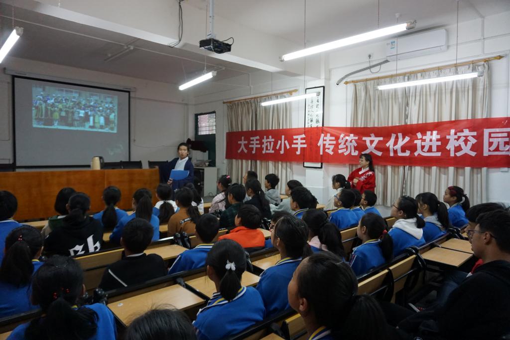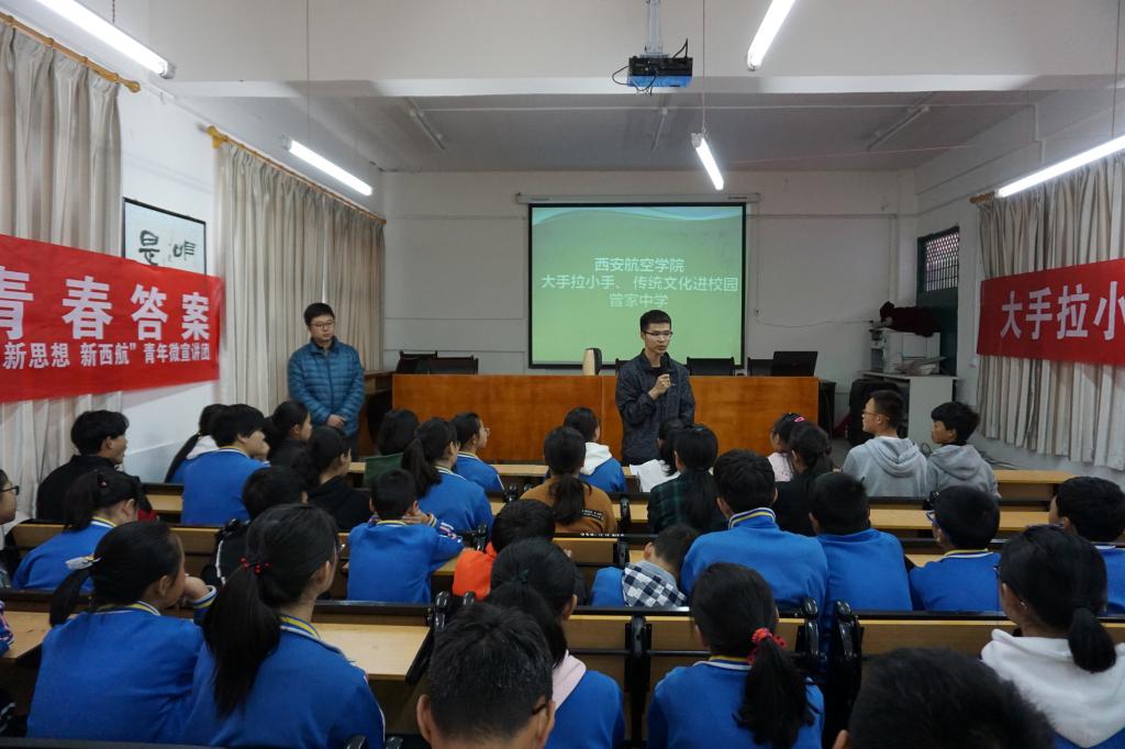 为落实教育扶贫“双百工程”,积极助力脱贫攻坚,大力弘扬传统文化。4月12日,由万博官网“新时代 新思想 新西航”青年微宣讲团、习近平新时代中国特色社会主义思想学习读书会、书画社以及汉服社共同组成的学生队伍赴安康市镇坪县曾家中学、牛头店中学,开展“大手拉小手,传统文化进校园”系列活动。