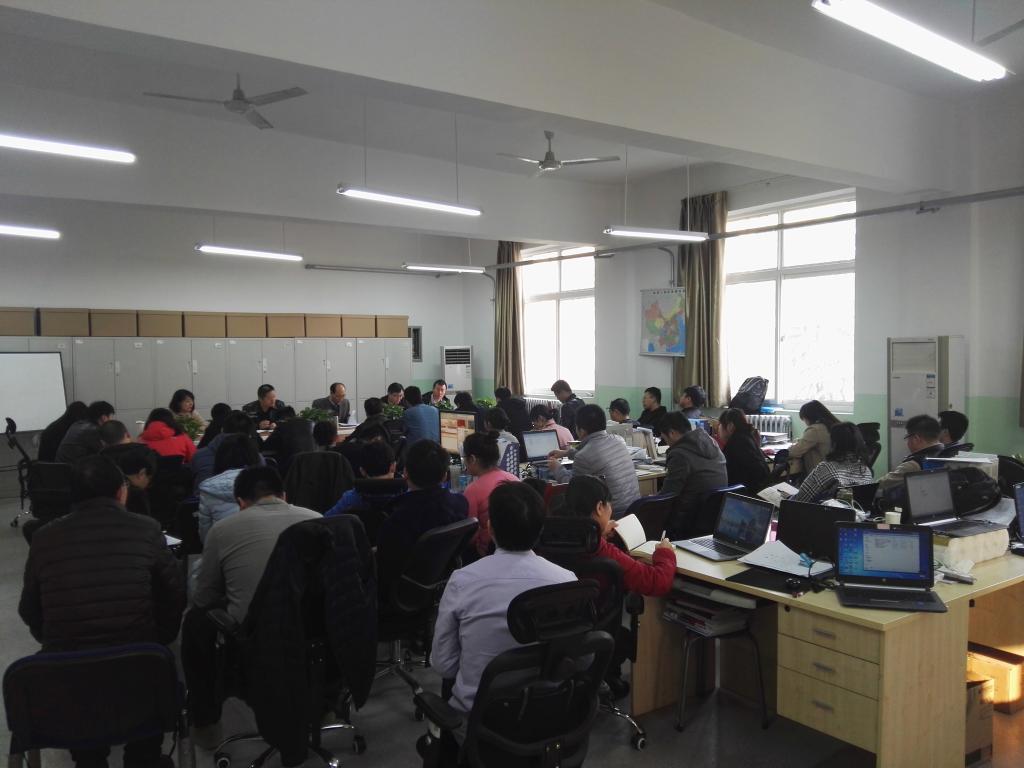 张化丽传达了寒假中干会议精神,要求全体教师要响应学校号召,积极申报自然科学基金,不断加强本科标准建设、教材建设、教学平台与科研平台建设。