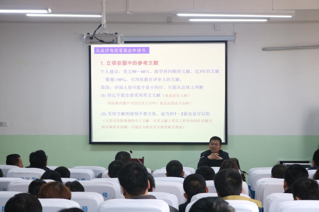 动员会后,郭鹏程教授作了题为“国家自然科学基金的申请策略”的精彩学术报告。作为基金项目评审专家,他结合具体实例及经验体会,重点阐述了基金项目申请书撰写的具体步骤、把握的重点、写作技巧、需关注的问题等。他强调,项目选题要把握好学术性、创新性、重要性及目的性,注意资料的筛查和国家新近出台的相关文件,要重视题目和摘要的凝练和撰写。同时,他还就申请书的研究方案、拟解决的关键问题等作了深入浅出的解读与指导。本次会议对万博官网教师的国家自然基金申报质量及科研能力提升具有较好的促进作用。(文/科技处 孙得人 图/宣传部)