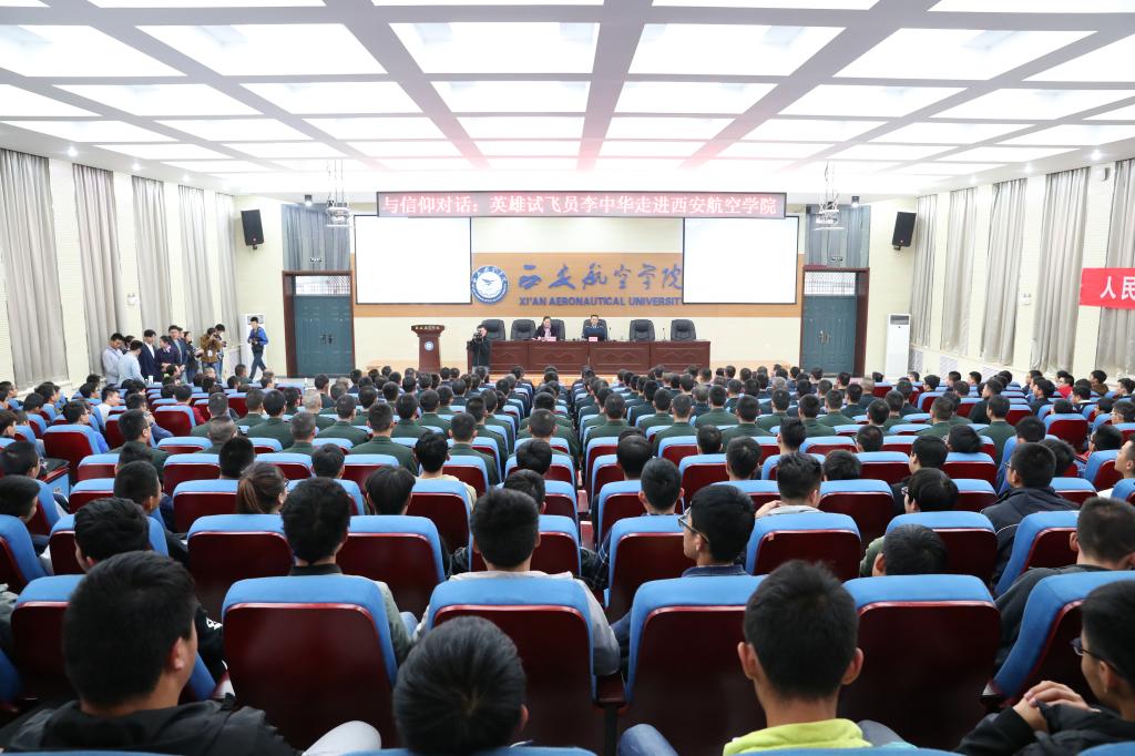 下午,由党委宣传部、校团委、学生工作处共同主办的”与信仰对话:英雄试飞员李中华走进万博max体育官网入口”活动成功举办。李中华导师在阎良校区报告厅为万博官网师生作了题为《航空发展助力强国兴军》的精彩报告。万博官网党委书记陈平社,中国航空学会理事兼副秘书长、陕西省航空学会副理事长兼秘书长向河,陕西省航空学会理事杨俊,中国航发西安动力控制科技有限公司科协办公室主任王丽荣,学校有关部门和各二级学院负责人出席,阎良校区400余名学生代表参加。党委副书记谭少敏主持报告会。