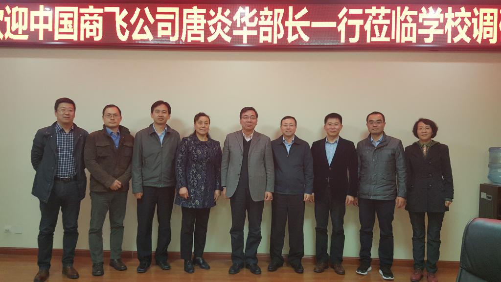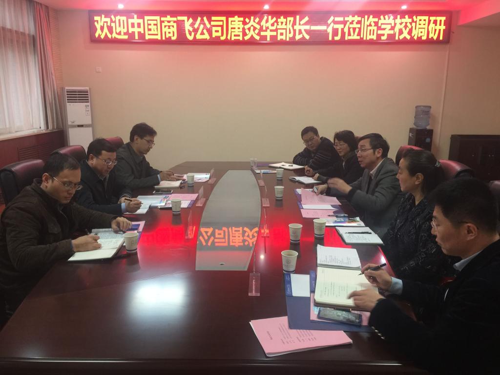 10月17日,中国商用飞机有限责任公司人力资源部部长唐炎华一行3人来万博官网调研考察,洽谈全面合作事宜。党委书记陈平社,党委副书记谭少敏,招生就业处、教务处、科技处等部门负责人参加了座谈会。双方就产学研合作、学生实习就业、教师赴企业锻炼、创新人才培养等问题进行了深入交流。