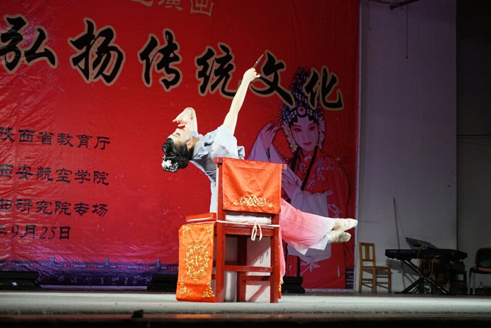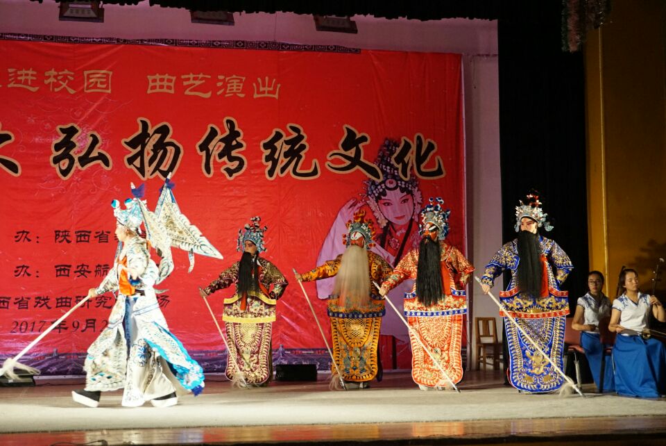 晚会在板胡奏出秦腔曲中拉开了序幕。二胡合奏《赛马》,打击乐合奏《龙腾虎跃》,秦腔片段《教学》、《神亭岭》、《散花》、《白水滩》等精彩演出,展示了演奏家、演员的精湛技艺,专家现场对秦腔的美学特征、行当分工、服装及表现手法等进行一一讲解,为在座观众送上了一场宏大的文化盛宴,也使师生们深深感受到传统文化的魅力。