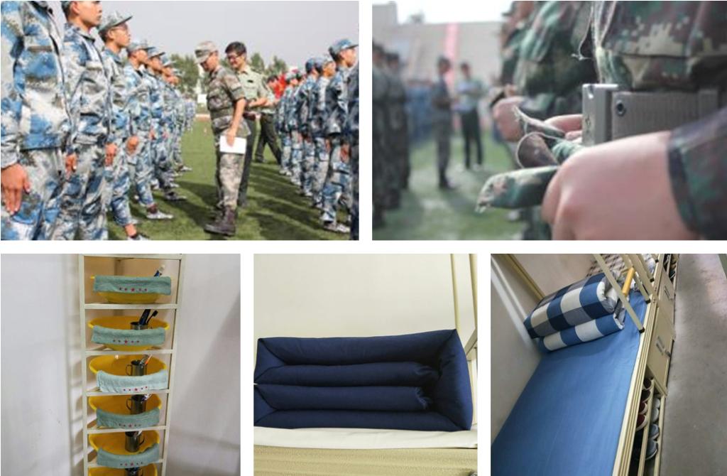 9月10日-12日,军训团在沣惠、阎良两校区分别举行队列比武、军容风纪评比及内务大比拼等活动,再现了真实的军营生活,激发了参训学员的军事训练热情,提升了军事训练效果。队列比武共分立正跨立稍息、停止间转法、齐步进行与立定及正步的进行与立定等四项内容,检验了学生对单兵队列动作的掌握程度;军容风纪评比包括队形、着装、军姿、整理军装等内容,规范了学生的行为、着装与个人卫生,为学生养成良好生活习惯奠定了基础;内务大比拼对寝室卫生、寝室文化、寝室纪律进行随机抽查和专项检查,促进了学生良好寝室生活习惯的养成,提升了学生“自我管理、自我服务、自我监督”的能力。