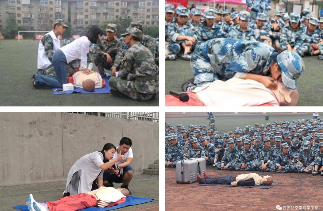 9月15日上午,军训一团邀请西安市红十字会6名专业讲师在沣惠校区进行现场安全急救知识培训。培训分理论和实操两部分,专家针对遇到突发事件出现的心脏骤停、创伤救护等情况的急救基本程序、自救互救方法进行了普及,让新生初步掌握急救的基本理论常识。随后利用模拟道具对心肺复苏、气道异物排出等内容做了形象生动、深入浅出的演示讲解,并让学生进行现场演练。经过近两小时的培训,参训学员对应急救护常识和技能有了更直观的了解,提升了对突发安全事故的科学判断能力和自我救护能力。