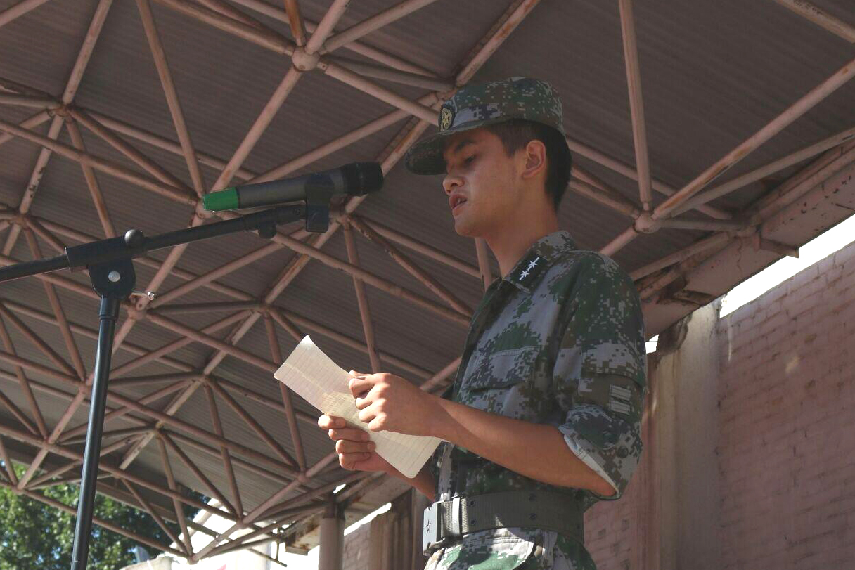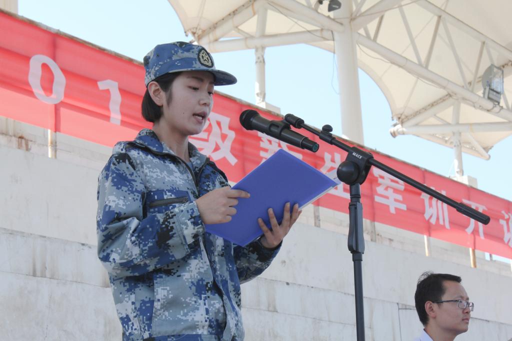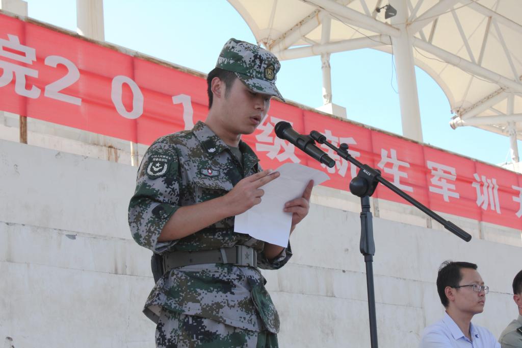 教官代表肖楠、陈航,指导员代表刘雨辰、周俊屹及2017级新生代表分别作了表态发言。会上,谭少敏、宋文学分别向军训团授旗。