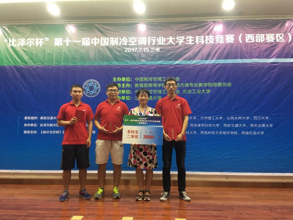 7月14日至15日,“比泽尔杯”第十一届中国制冷空调行业大学生科技竞赛西部赛区竞赛在兰州交通大学成功举办,在本次竞赛中,由万博官网能源与建筑学院杜芳莉老师指导的吴晗、张富康、陈达明三位同学组成的“果保”队荣获本科组二等奖。
