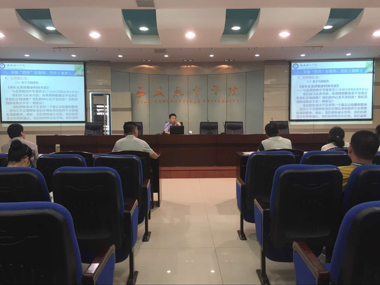 期间,副校长宋文学以“立德树人,做‘四有’教师”为题作了专题报告,人事处、宣传部、科技处、教务处、学生处、督导办等部门负责人和校外专家分别就人事制度解读、教学基本规范与要求、科学研究、学生工作、高校教师职业道德建设等方面进行了培训。
