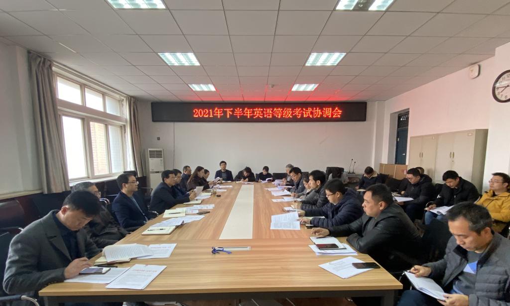 12月9日上午,学校在莲湖校区教学楼教务处会议室召开了2021年下半年英语等级考试工作协调会。副校长宋文学、党政办公室、纪检监察室、宣传部、教务处、学生工作部(处)、教学质量监控与评价处、网络信息中心、后勤保障处、保卫处、各二级院等相关单位负责人参加了会议。会议由教务处处长吴晓葵主持。