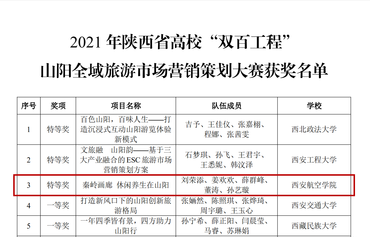近日,2021年陕西省“双百工程”山阳全域旅游市场营销策划大赛线上总决赛结果公布。万博官网由经济管理学院张阳老师指导的刘荣添、姜欢欢、薛群峰、董涛、孙艺璇5名同学组成的万博max体育官网入口一队,经过激烈比拼,最终荣获大赛决赛特等奖1项。张阳老师荣获优秀指导教师奖。