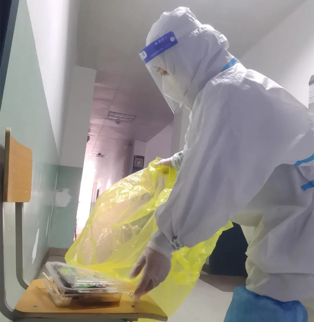 12月30日,南北楼临时留观区迎来一批特殊的人群——综合餐厅工作人员。留观区工作人员根据人群特点优化管理流程,提高管理的针对性,通过细致、耐心、个性化的管理,使这批特殊人群在临时留观区感受到了温暖,增强了战胜疫情的信心。志愿者陈杰说道,“平时是他们为我们服务,现在换做我们为他们服务,这个暖心小插曲必定会激励全校师生为打赢疫情防控阻击战作出自己应有的贡献。”