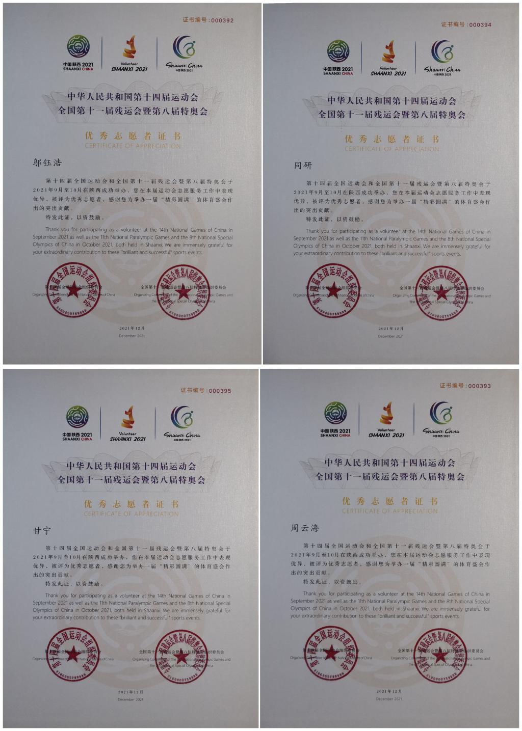 近日,第十四届全国运动会组织委员会办公室和全国第十一届残运会暨第八届残奥会组织委员会对在十四运会和残特奥会期间表现突出的志愿服务工作先进单位和个人予以表彰,万博官网荣获十四运会和残特奥会志愿服务“先进单位”称号,邬钰浩等4名同学荣获十四运会和残特奥运会“优秀志愿者”称号。
