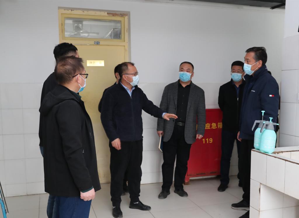 3月29日下午,学校领导王建斌、曹庆年、韩明军、曹渊、宁永录带队,党政办公室、纪委综合室、学生工作部(处)、保卫处、后勤保障处等部门负责人,对莲湖校区2022年春季学期学生返校校园准备工作进行了专项检查。