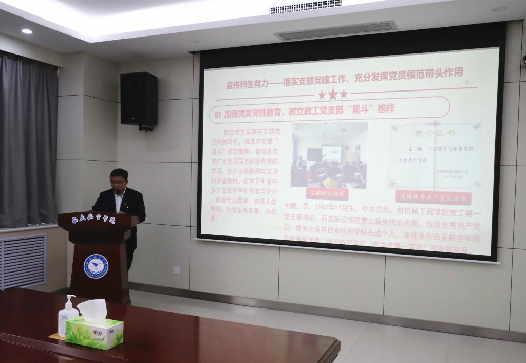 材料学院党总支书记王永锋、机械工程学院党总支书记周小勇分别汇报了材料标杆总支和机械教工第一党支部的“双创”建设情况、特色做法、取得成效以及努力方向。