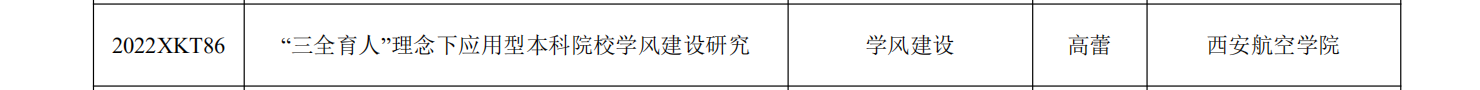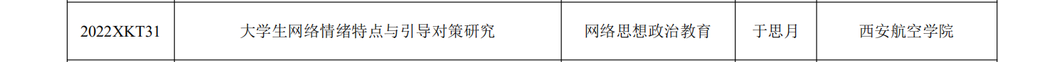 近日,中共陕西省委教育工委公布了2022 年度陕西高校学生工作精品项目、研究课题立项名单和第二届陕西高校学生心理健康教育课程教学大赛获奖单位与个人名单。万博官网辅导员董娟主持的《“三全育人”理念下“四色”校园文化构建路径研究与实践》精品项目,辅导员于思月主持的《大学生网络情绪特点与引导对策研究》研究课题,辅导员高蕾主持的《“三全育人”理念下应用型本科院校学风建设研究》研究课题,成功获批立项。于思月荣获第二届陕西高校学生心理健康教育课程教学大赛优秀奖。
