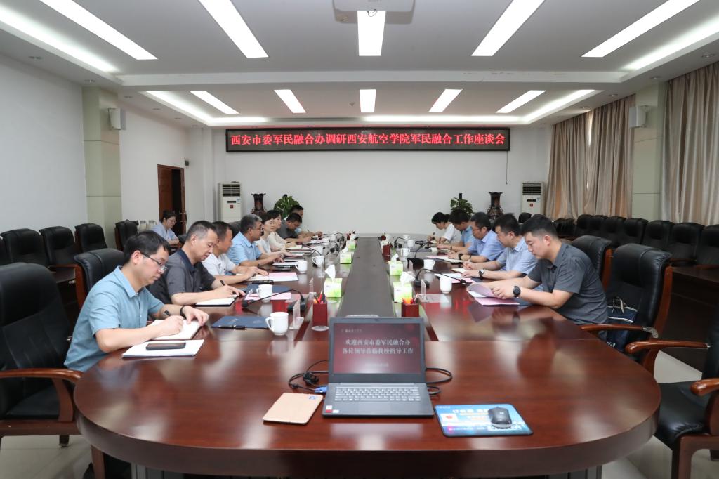 8月5日上午,西安市委军民融合办副主任岳智宏,市委军民融合办秘书处副处长王冬,发展服务中心副主任商敖一行5人来万博官网调研交流。万博官网校长祁玉龙,副校长金文,发展规划处、科技处、士官学院、液压技术研究院、校办工厂等单位负责人参加了调研座谈会。座谈会由祁玉龙主持。