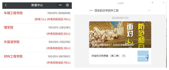 学生工作部(处)持续跟进学生健康状态监测,每日开展线上健康打卡,定期开展防疫知识宣传工作。组织20余名学生工作人员走访慰问家庭经济困难、学业困难、受疫情灾情影响、心理健康异常及参军入伍等学生家庭,向家长传递学校关怀,宣传国家和学校资助帮扶政策。为改善学生宿舍环境,解决学生储物问题,完成学生宿舍综合储物柜项目的前期调研、筹备、招标。完成2022级新生军训服、士官生、飞行学员、航空艺术专业学生被服招标和大学生意外伤害保险招标工作。根据疫情防控要求,制订调整2022年秋季学期学生开学返校及新生报到方案。