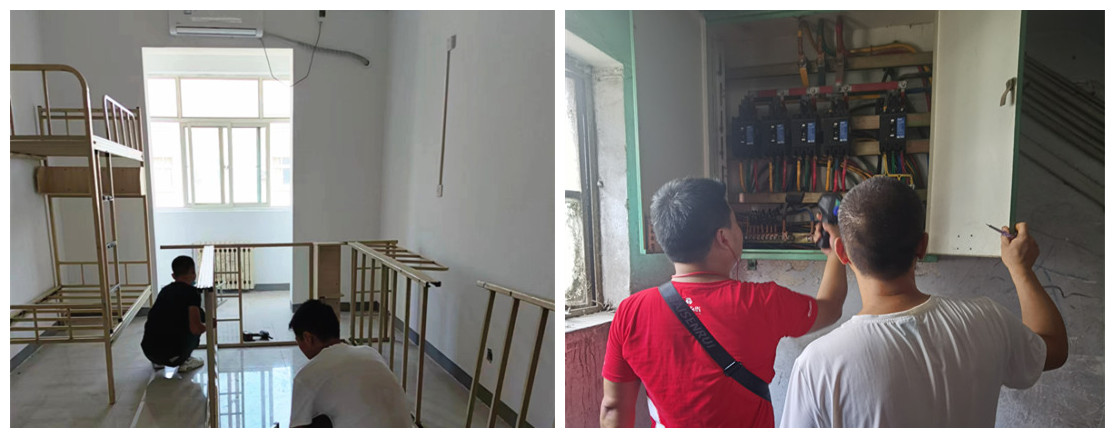 后勤保障处对阎良、莲湖校区共7个餐厅进行了全面升级改造,在用餐大厅和后厨全部加装空调和消防喷淋系统,设置食品安全快速检测室,总改造面积近12,000平方米。对两校区楼宇防水、外立面瓷砖脱落等进行维修,对楼宇内墙面进行粉刷。设置莲湖校区教学区和家属区之间的硬隔离,统一安装铁艺围挡、预留消防通道,在莲湖校区1、2、5、6学生公寓楼顶安装安全防护网。对学校水电动力设备进行全面检修,消除师生用电安全隐患。做好两校区学生公寓严格日常防疫消杀,完成空调线路敷设整改、2022级新生宿舍窗帘清洗等工作,努力为师生营造一个安全、温馨、美丽的校园生活环境。