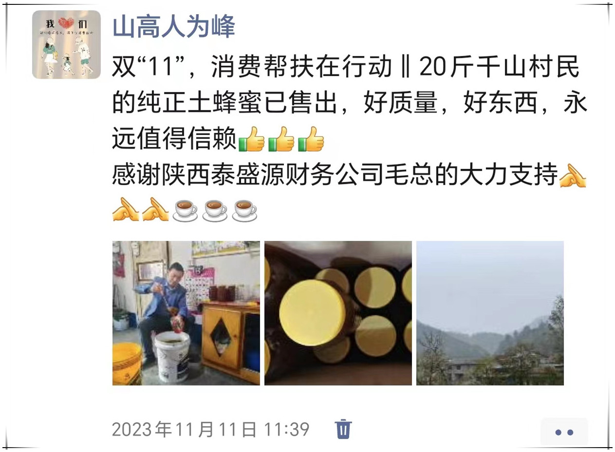 大堰山上、千山沟里以养殖中蜂、乌鸡为主要收入的脱贫户们,由于交通条件不便利和销售市场过小,导致产出的土蜂蜜和跑山乌鸡存量过大,销路不佳,有的等着缴纳医疗保险,有的等着给孩子交生活费。工作队调研了解情况后,积极制定销售策略,大家纷纷通过微信、抖音、快手等网络平台和面对面销售等方式广泛宣传介绍,线上线下齐发力拓宽销售渠道,共帮销蜂蜜100斤,乌鸡60只,价值一万多元,一定程度上为村民增加了收入,解决了困难,同时也增加了村民靠产业致富的信心。