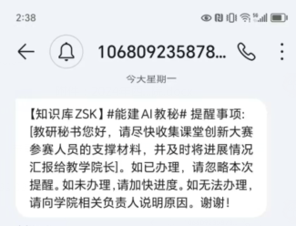 在传统的教学管理模式下,教学秘书需要通过QQ、微信或电话等方式,对教师提交资料的通知进行二次提醒,这一过程不仅增加了工作量,也影响了工作效率。而“能建AI教秘”系统的引入,有效地解决了这一问题。