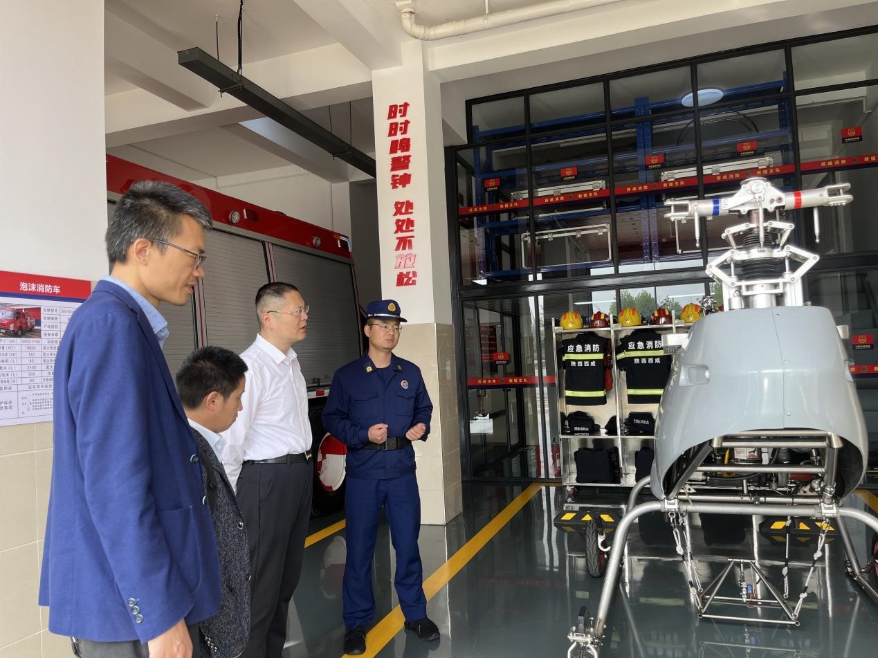 为进一步深化消防救援领域与科研院校的合作,4月17日,飞行器学院党院长董彦非、院长助理张建华等一行五人到西咸新区消防救援支队沣西新城大队参观调研。调研团队与沣西新城消防支队大队长刘毅、赵启龙等相关人员进行了座谈,就消防无人机在应急救援中的应用进行了深入交流。