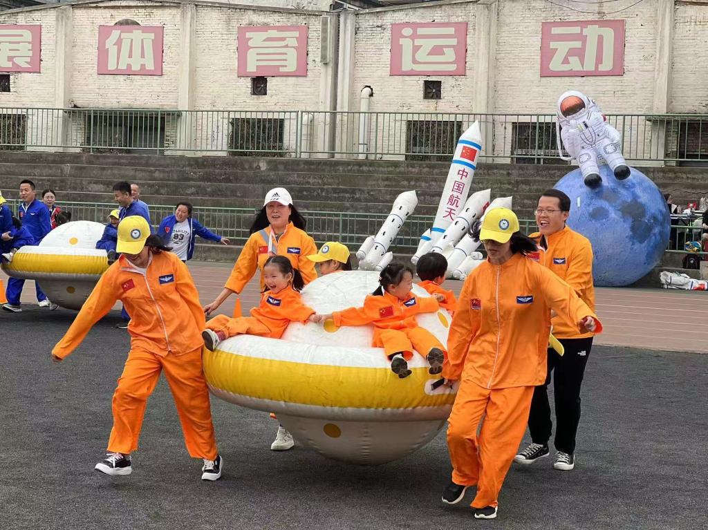 音乐响彻运动场,运动会正式拉开帷幕。活动以“火箭直冲云霄、航天飞机、宇宙飞船、遨游太空、筑梦蓝天”等多种游戏的形式向孩子们宣传科学、普及航空航天知识。形式多样的亲子游戏,让赛场成为欢乐的海洋。幼儿和家长在游戏中尽情欢乐、尽情释放、尽情探索,在锻炼肢体协调性和灵活性的同时,激发出更多的运动潜能。孩子们不仅增进了彼此的友谊,还促进了亲子间的情感交流。相信孩子们在游戏竞技中也能更好领会航天人的艰苦奋斗、勇于探索、开拓创新的精神,学习航天人严肃谨慎、志存高远、无私奉献的品质和高度的责任感。