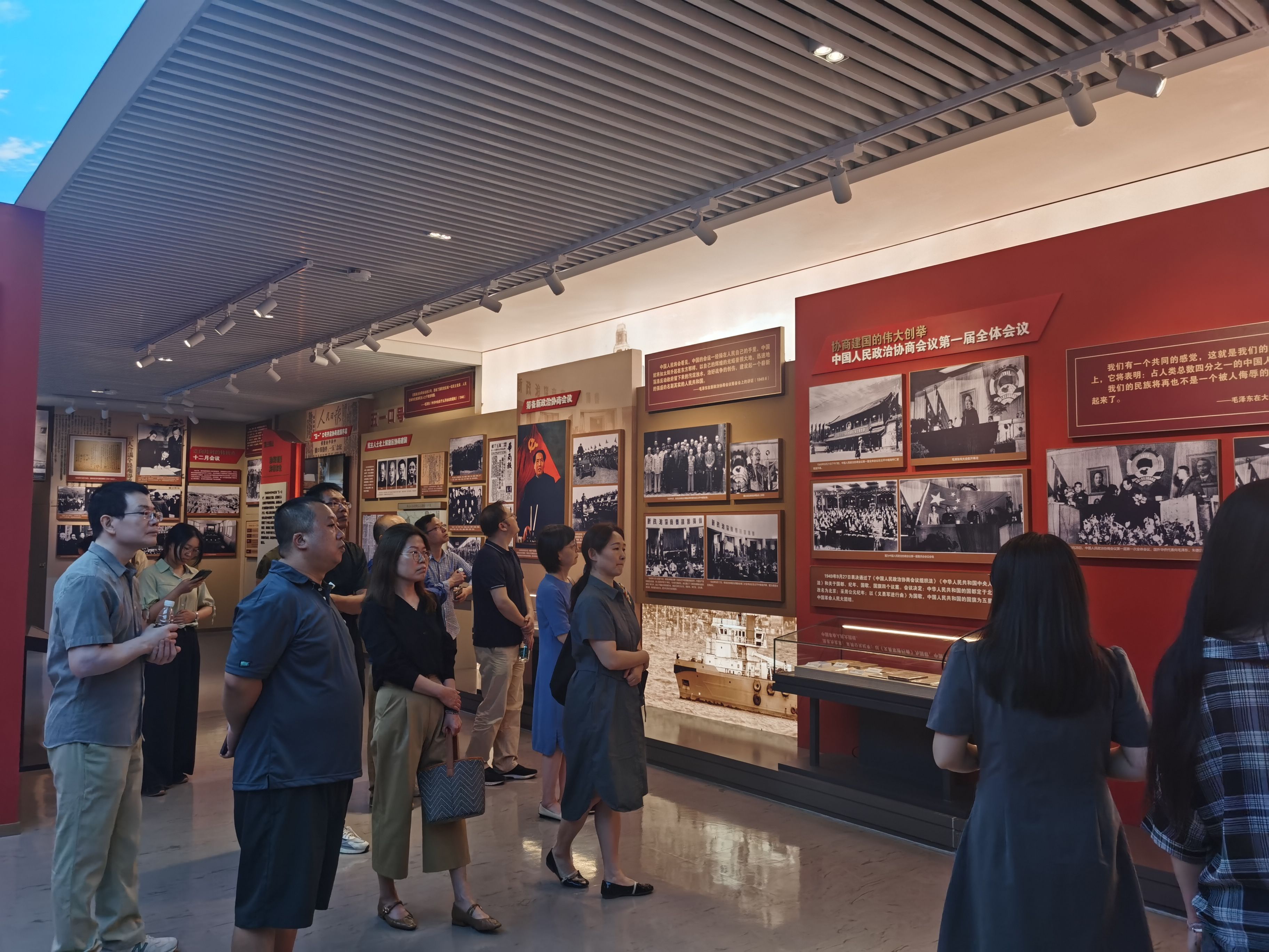 在讲解员的带领下,参观人员还一起重温了中共中央发布“五一口号”的过程及其重要意义。这标志着各民主党派、无党派人士公开自觉接受中国共产党的领导,拉开了中国共产党同各党派、各团体、各族各界人士协商建国的序幕,奠定了中国共产党领导的多党合作和政治协商制度的基础。