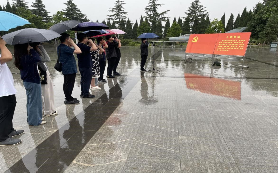 活动当天下着大雨,党员同志们在雨中追寻革命足迹,缅怀革命先烈。在扶眉战役烈士纪念碑前,全体党员静默肃立,为英勇献身的烈士们默哀。默哀过后,党员同志们向革命先驱鞠躬致敬,敬献花篮,并重温入党誓词。