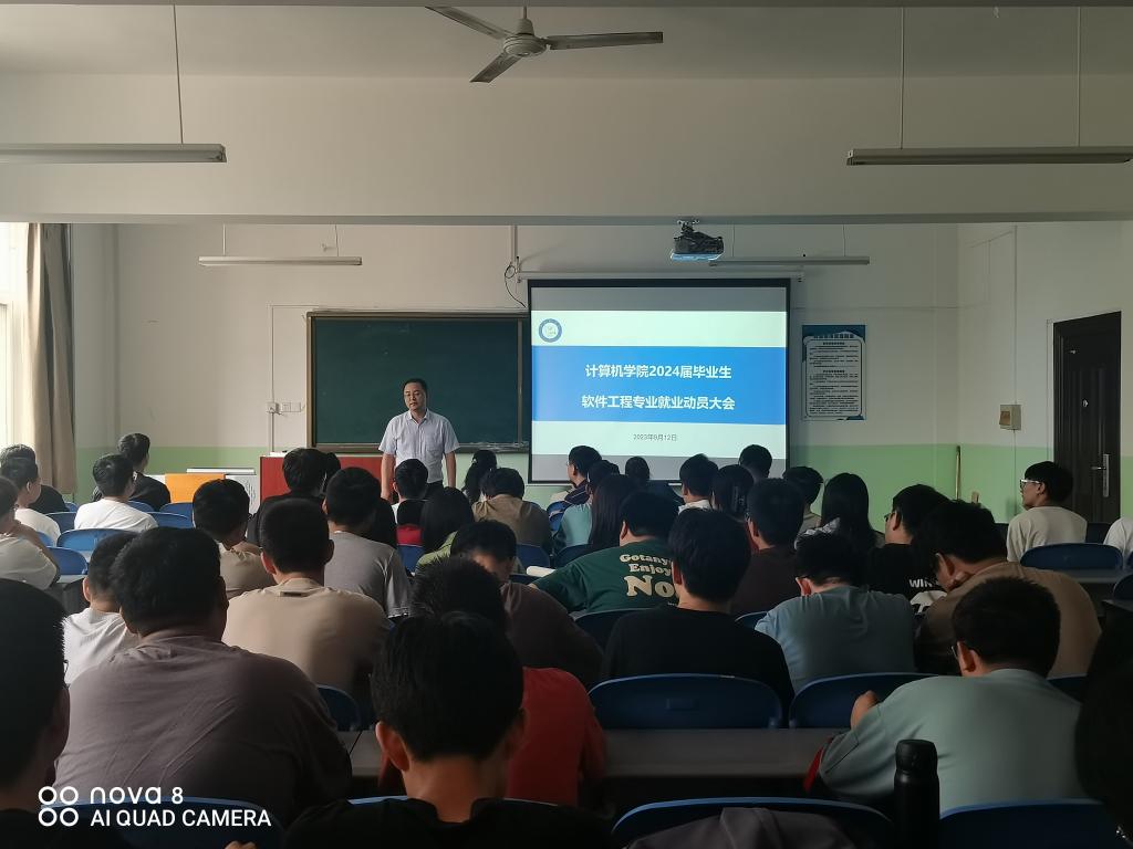 为进一步做好学院2024届毕业生就业工作,帮助毕业生认清就业形势,9月11日-9月15日,计算机学院分专业召开了2024届毕业生就业动员大会。学院党总支书记陈长征、院长吴晓葵、副书记汪芳、副院长刘舟洲、各专业负责人、教研室主任、学业导师、毕业班辅导员及全体2024届毕业生参加了动员会。