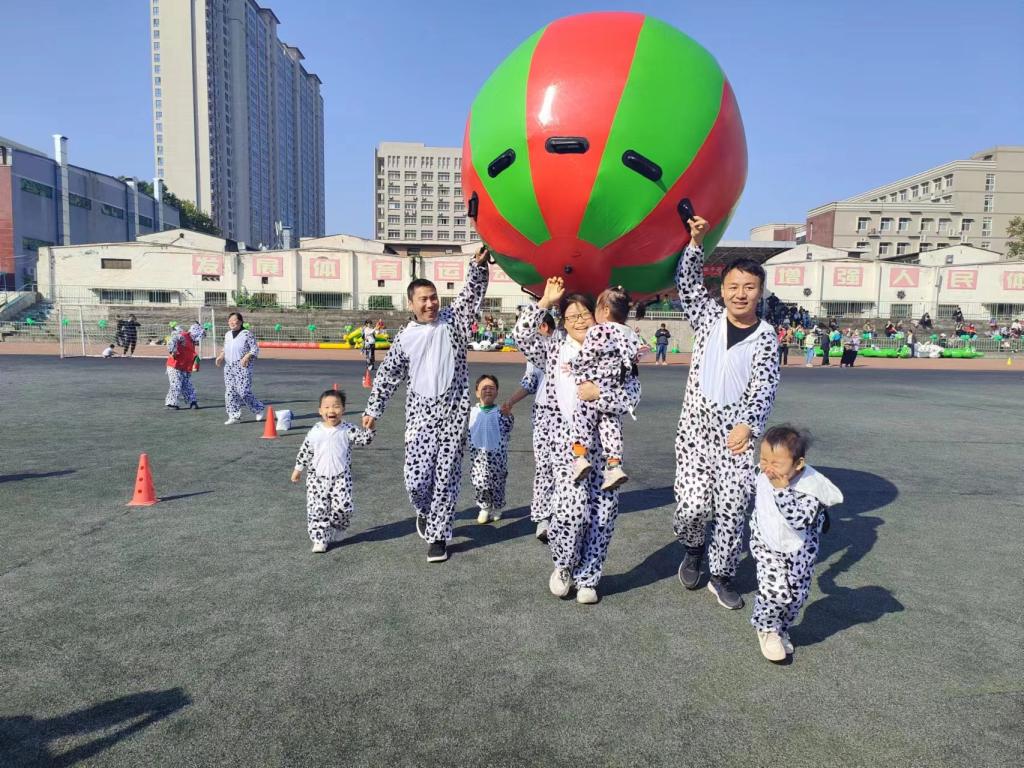 伴随着欢快的音乐,亲子趣味运动会正式拉开帷幕。旗手护送着国旗庄严入场,孩子和家长分别组成五支森林动物小队,他们迈着整齐的步伐、口号整齐响亮,雄赳赳、气昂昂地走入会场,充分展示团队的力量与风采。在园长李燕梅热情洋溢的致辞后,教师们为大家带来俏皮的开场舞《小跳蛙》,随后,带动家长和孩子们进行亲子热身运动,在欢声笑语中,气氛逐渐被点燃。本次活动以“趣味、合作、安全、快乐”的原则,我园精心设计了适宜的亲子游戏:“徒手模仿配合”、“消灭怪兽”、“龟兔赛跑”、“乾坤豆大战”、“毛毛虫大战”、“蚯蚓战队”,每一个游戏都趣味横生,精彩纷呈,只有团队配合、齐心协力才能顺利完成游戏任务。在游戏中,孩子和爸爸妈妈们积极参与,奋力追赶,串串欢声笑语不绝于耳,处处皆是欢欣的景象,爱意深深,温馨满满。运动会结束,孩子们都得到了一枚象征“胜利”的奖牌。